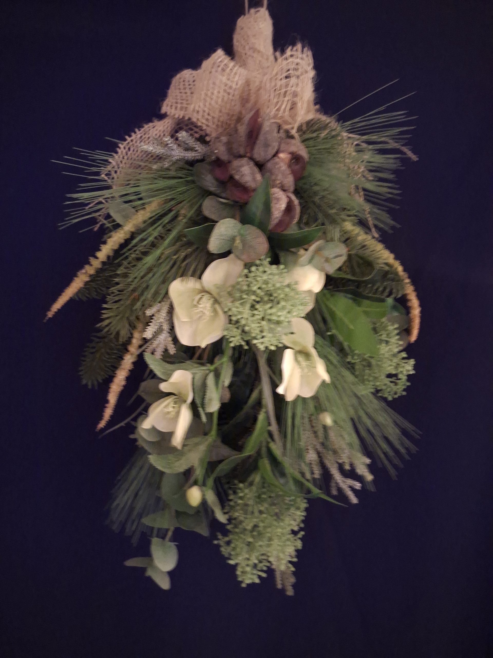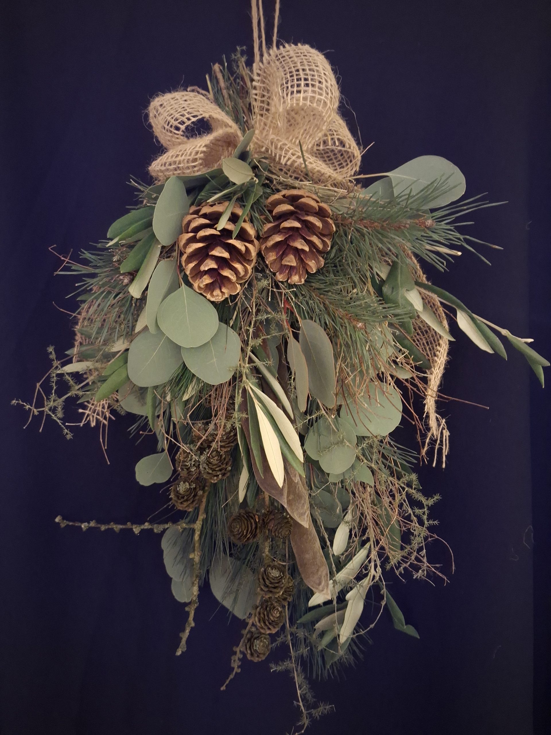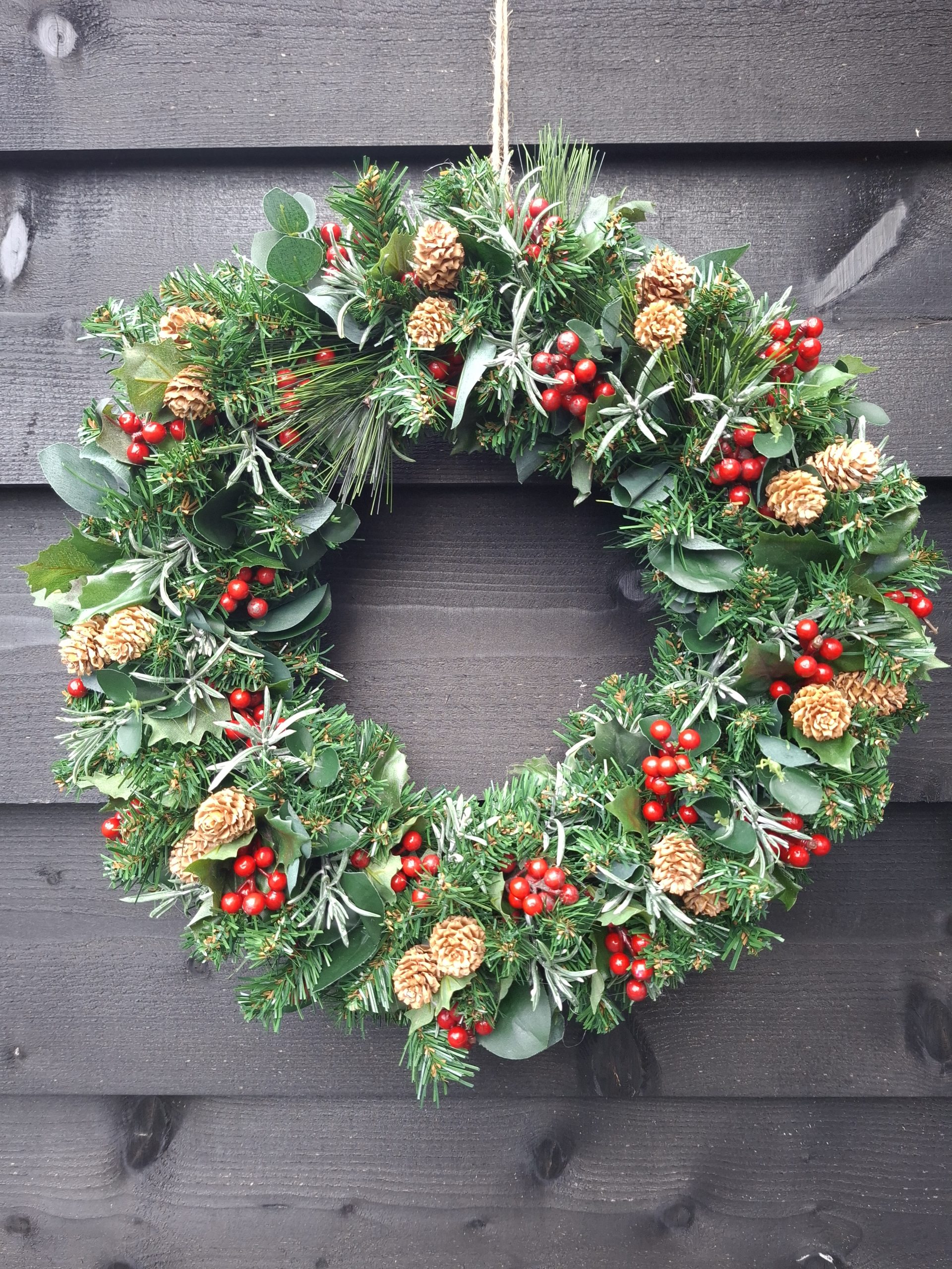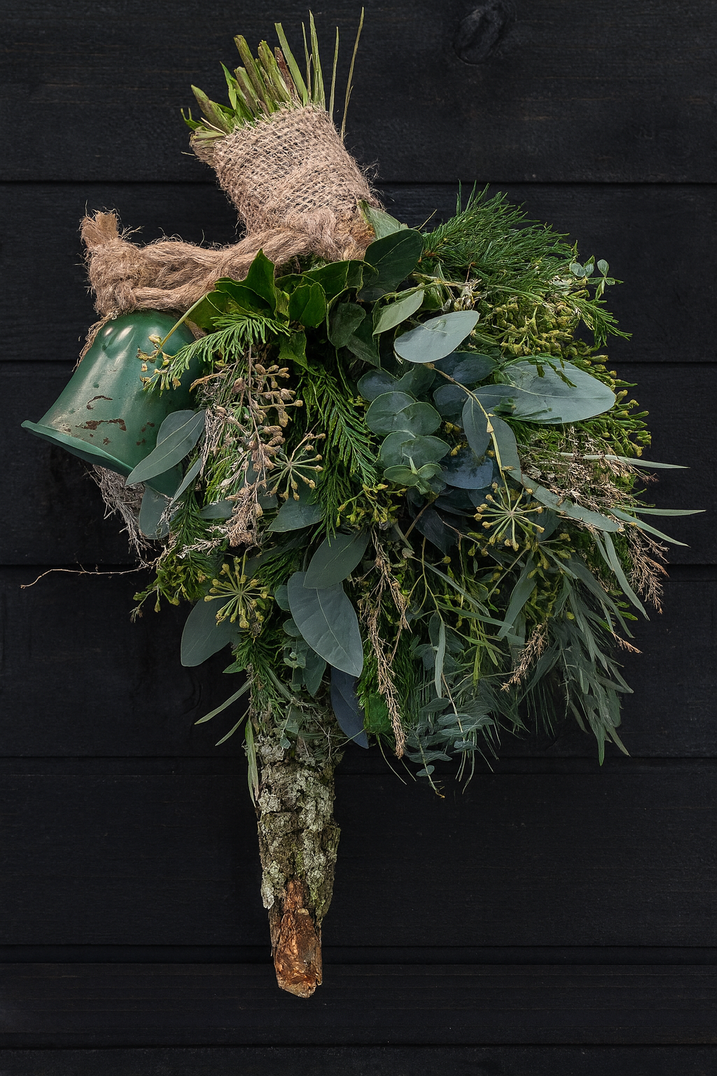 • Materiaal: Zijdegroen, kunstnaaldwerk, eucalyptus, decoratieve bollen en sneeuwdetails