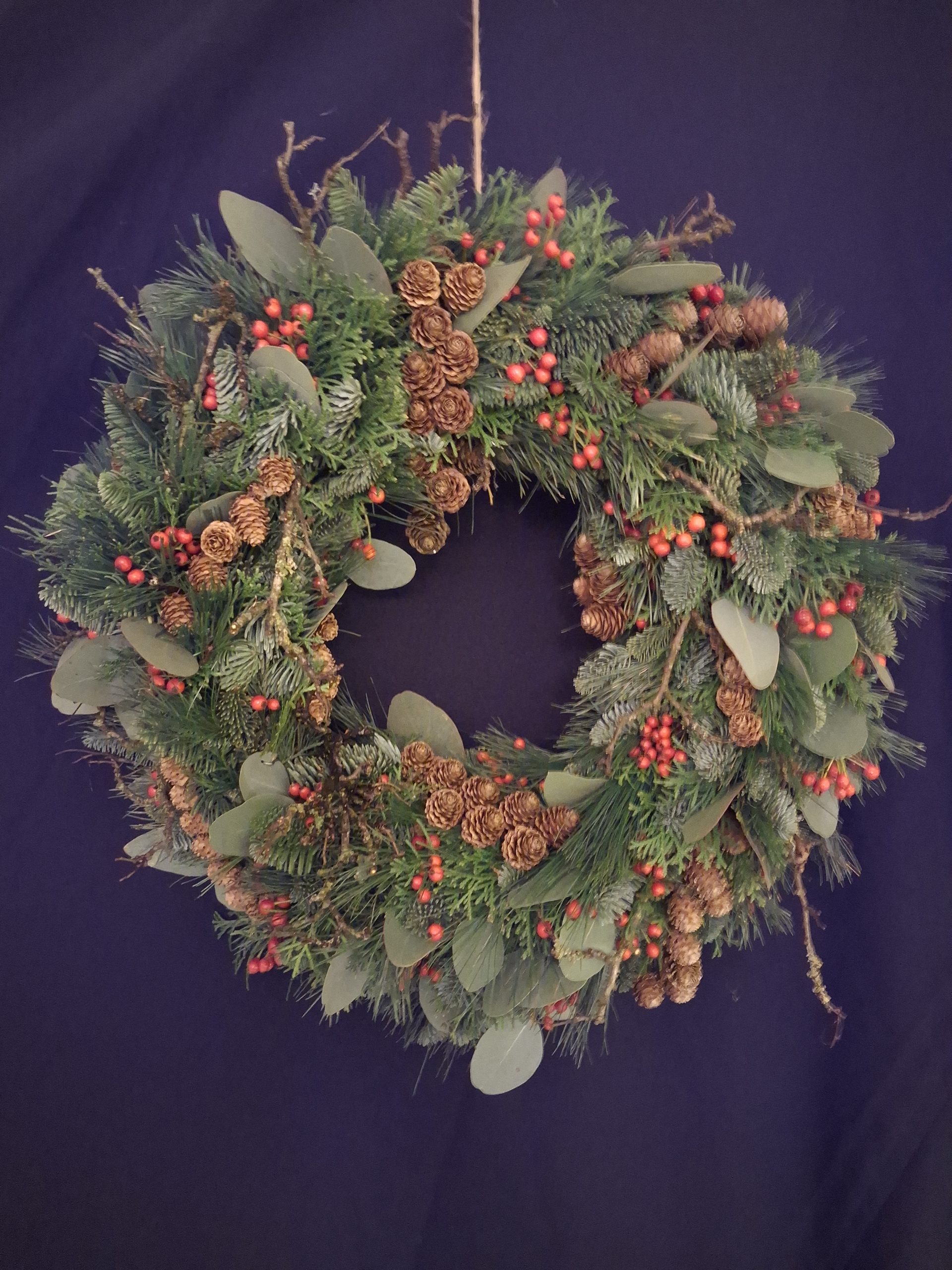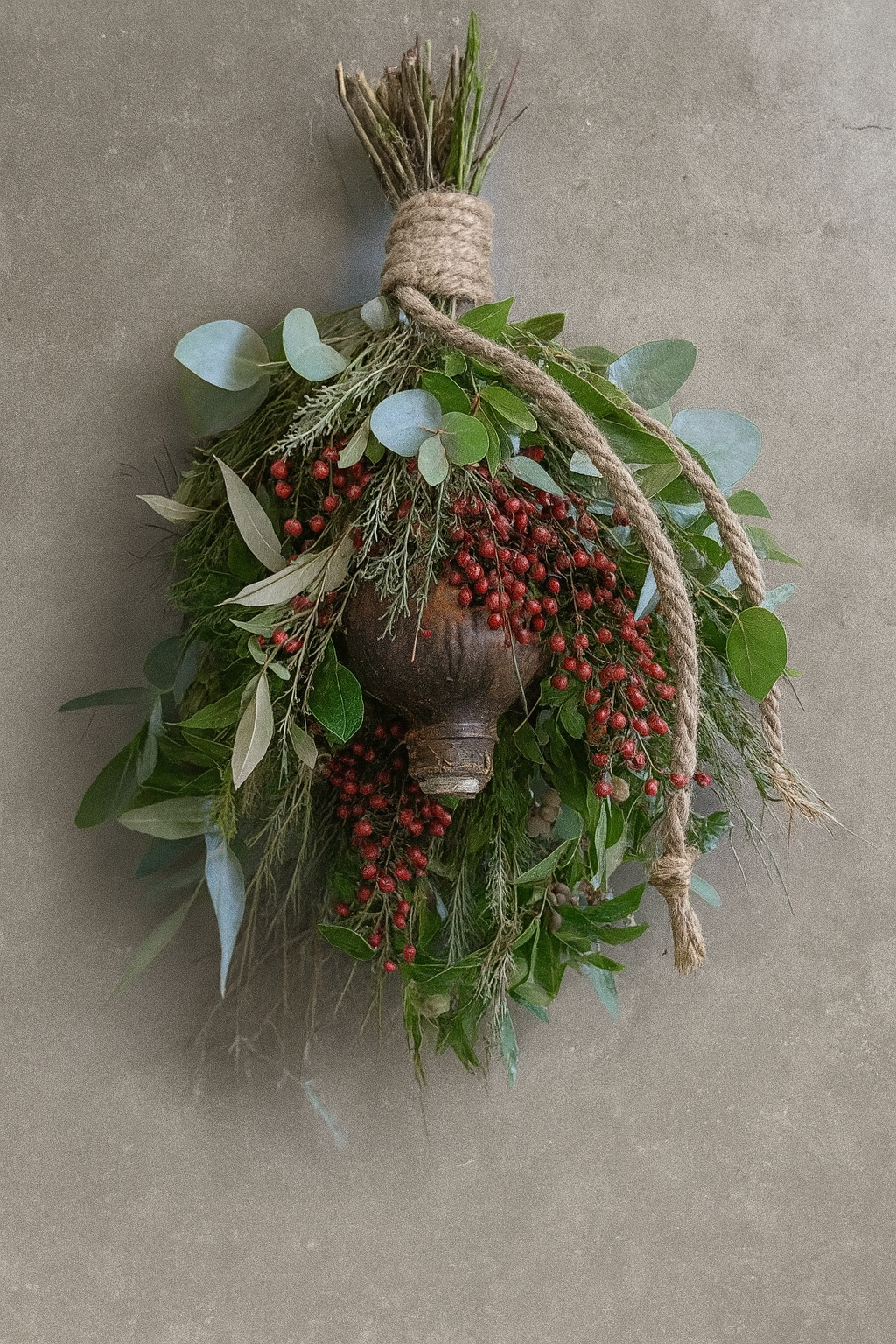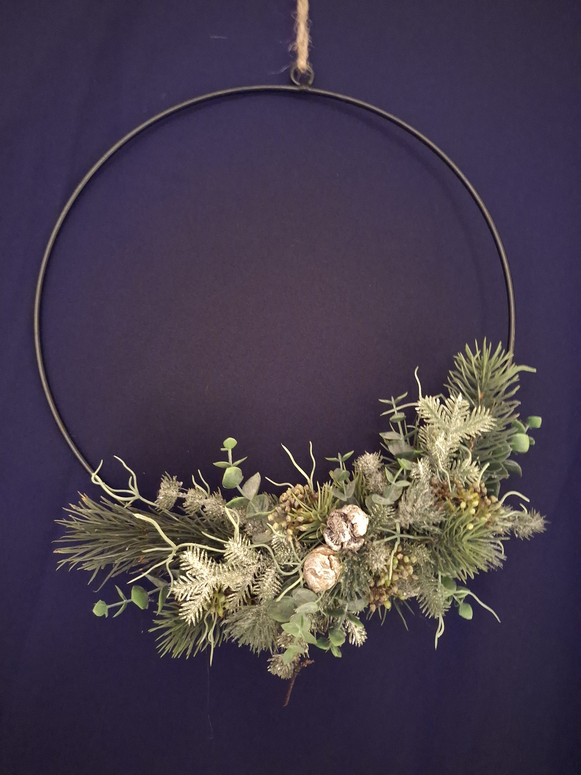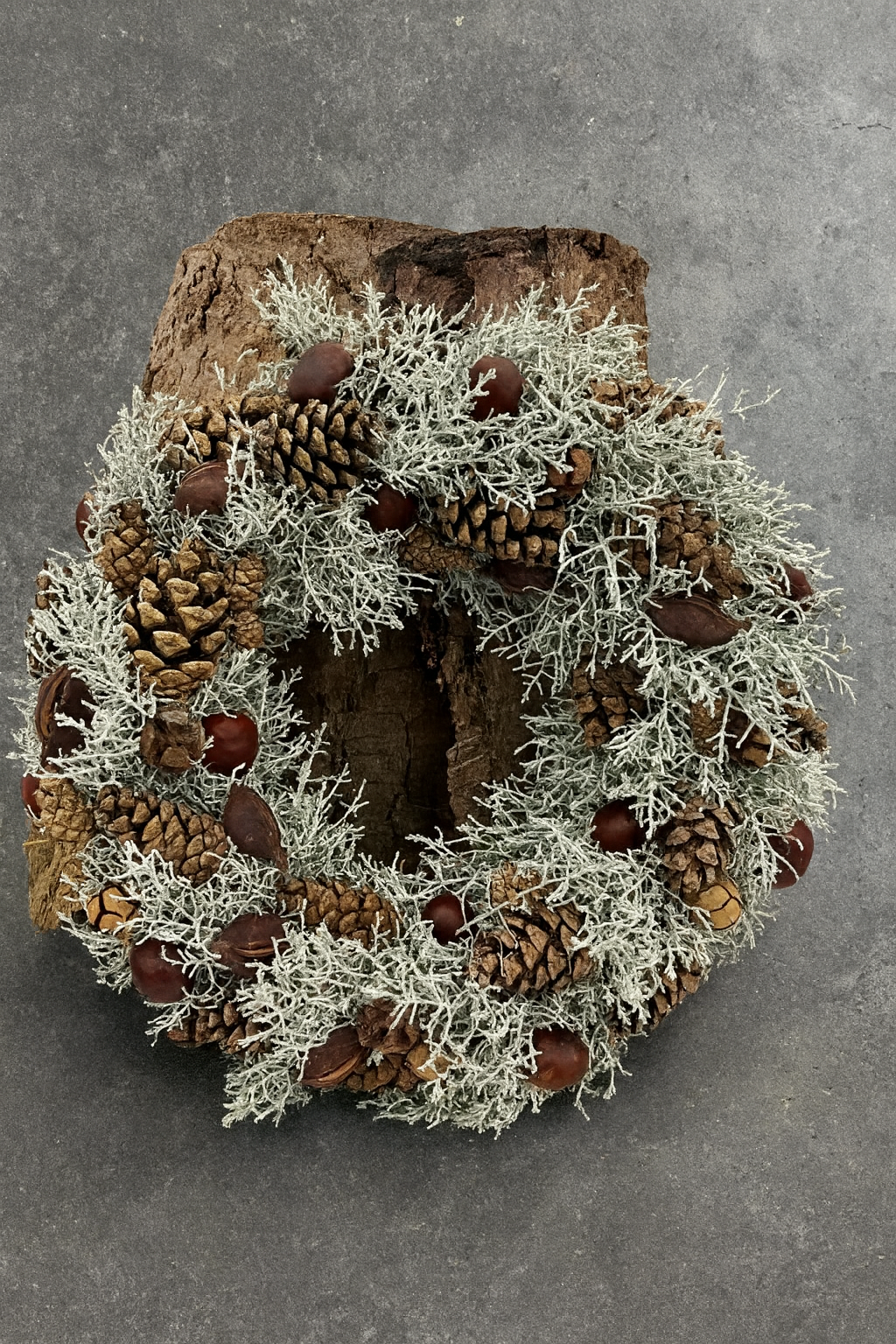 Dankzij het realistische zijden groen en de rustige kleuren past deze krans in vrijwel ieder interieur. Hang ’m aan de deur, boven een kast of gebruik ’m als stijlvolle basis voor een tafeldecoratie. De krans is volledig handgemaakt en straalt warmte, rust en winterse sfeer uit — een tijdloze decoratie die het hele seizoen een prachtige blikvanger vormt.